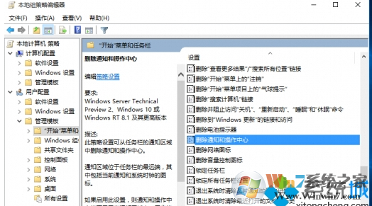 3、然后我们找到删除通知和操作中心。