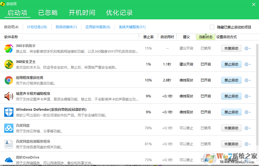 需要注意的是,如果不懂的话不要随便关闭系统服务的自启,以免引起系统问题,可以借助360安全卫士或者是点啊弄管家的加速功能,只关闭建议优化的选项。