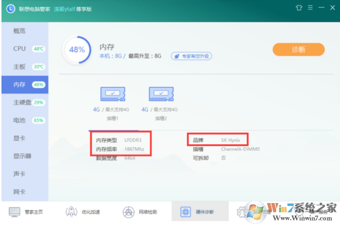 硬件检测软件中查询内存的类型、频率和品牌,要分清标压还是低压,尽量选择上述参数一致的产品,也可以选择市面上兼容性比较好的品牌。