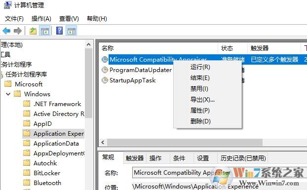 6、找到“\Microsoft\Windows\Application Experience  Microsoft Compatibility Appraiser”禁用即可,如下图