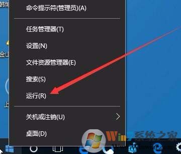 2、右键点击开始按钮,在弹出菜单中选择“运行”菜单项