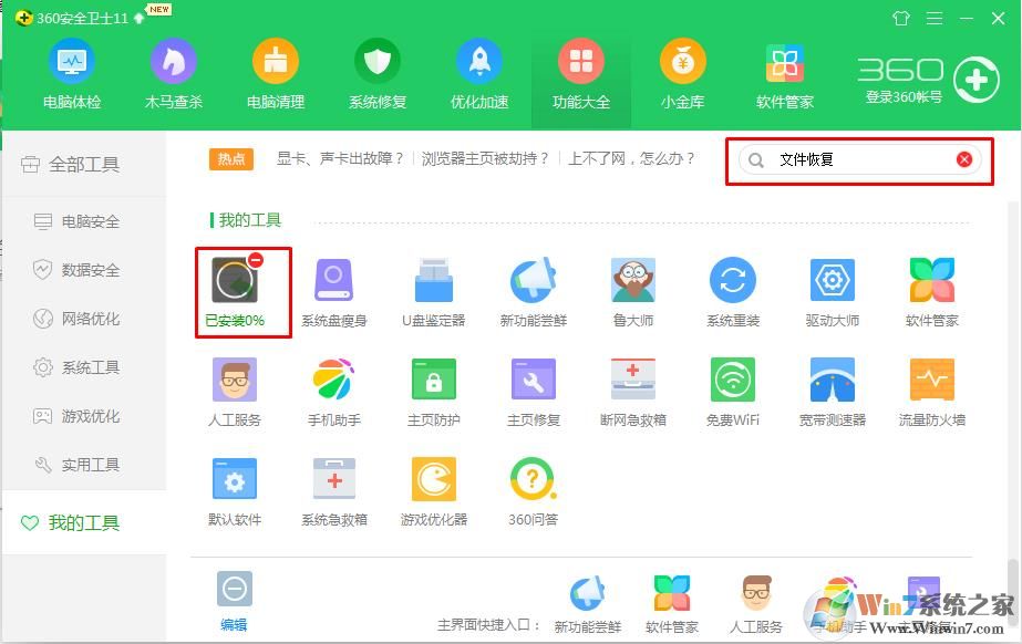 2、搜索文件恢复,这时我们可以看到已经在安装这个工具了。
