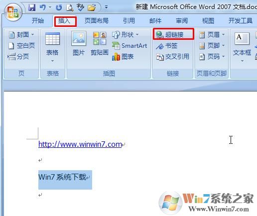 1、比如 要在 Win7系统下载 上做一个可以直接点击的连接,点击插入,然后选择超链接;
