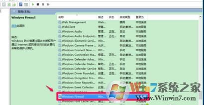 步骤二:之后在进入下个对话框时候,在本地服务窗口中,找到Windows Firewall服务,如果没有启用,左键双击Windows Firewall;