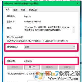 步骤四:在进入“Windows Firewall 属性”页面的时候,Windows Firewall服务的启动类型为:自动,服务状态为:正在运行。
