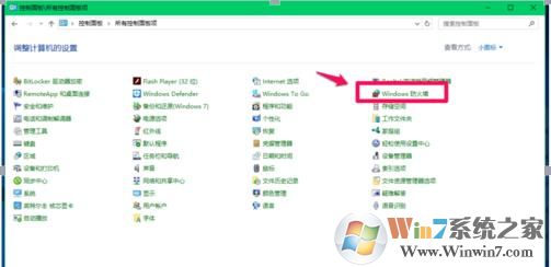 步骤一:在打开电脑之后,右键点击系统桌面左下角的“开始”,在开始菜单中点击“控制面板”,在控制面板中左键双击“Windows防火墙”;