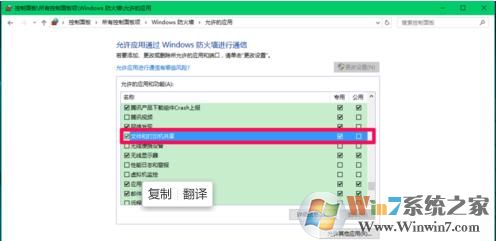 第二步:接下来我们需要选择允许和应用功能中的“文件和打印机共享”。