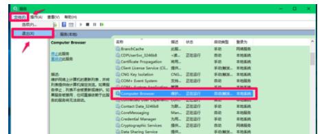步骤四:点击确定后,我们回到本地服务窗口,可以看到:Computer Browser   维护...  正在运行   自动;之后我们点击窗口左上角的“文件”,在下拉菜单中点击“退出”,退出本地服务。