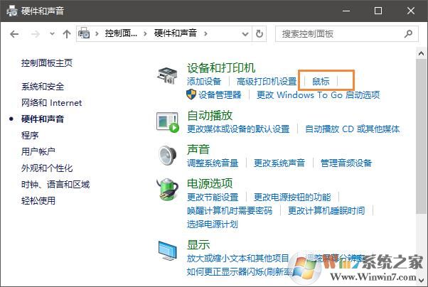 3、在右侧 设备和打印机下面 点击 鼠标 按钮,如图: