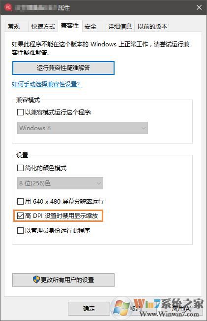 6、此外我们在wow.exe 或者 wow64.exe 右键,属性 勾选 高dpi设置时禁用镜头缩放 如果无效说明你右键的程序不对,请确认自己的系统是64位还是32位,推荐两个都勾上即可,如图: