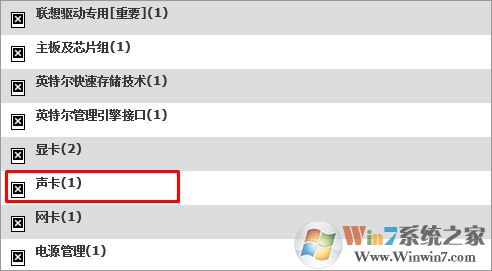 3、在驱动下载界面展开【声卡】,点击下载按钮;