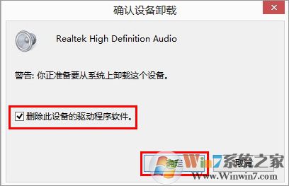 3、勾选“删除此设备的驱动程序软件。”后点击确定,按照屏幕提示完成卸载,如图所示: