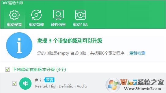 修复方案二:使用驱动自动安装工具下载并重新安装声卡驱动
