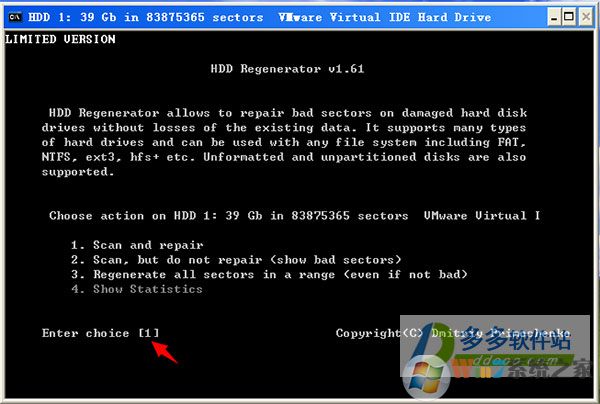 3、选择要扫描的硬盘双击之后出现DOS界面,如下: