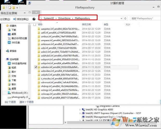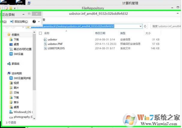 2、由上图分析得:设备应该是usb storage设备,然后到目录:,在C:\Windows\system32\driverstore\filerepository\找到一个以usbstor开头的文件夹,把该文件夹复制下载,然后粘贴到桌面上,如图: