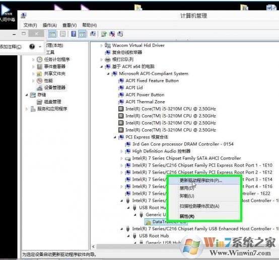 3、复制好路径,回到设备管理器,右击那个设备,选择更新驱动程序软件,操作如图: