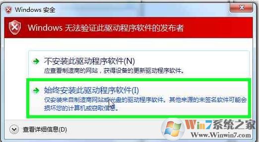 6、有的系统会有如下提示,选“择始终安装”即可,如图: