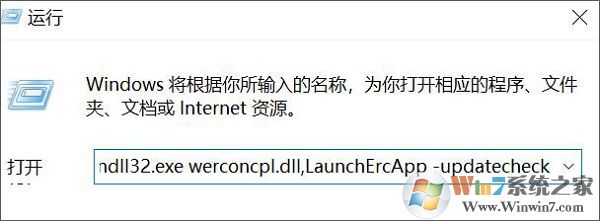 1、在键盘上按下Win+R后输入:rundll32.exe werconcpl.dll,LaunchErcApp -updatecheck 点击确定执行命令;
