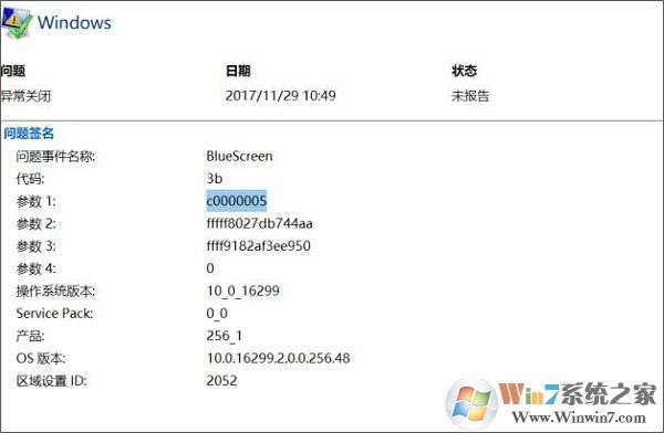 4、查看详细情况,比如参数1:c0000005,就代表应用程序不兼容造成的蓝屏(搜索引擎给出的答案)。回想下最近哪个软件假死无响应或者新装了什么吧,直接干掉一般都会解决的。