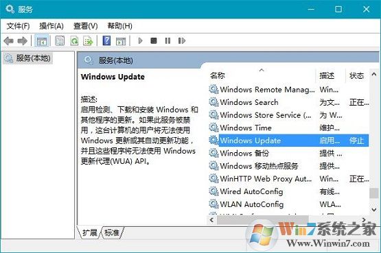 4、切换到服务界面,将Windows Update服务重新启用