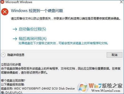 总结:以上就是Win10系统提示“windows检测到一个硬盘问题”的修复方法了,一定要做好自己的资料备份工作。