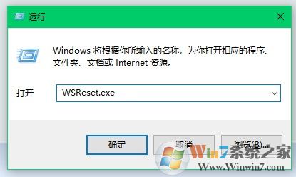 2、在运行窗口中,键入 WSReset.exe并点击“ 确定 ” 按钮;
