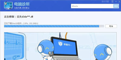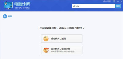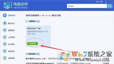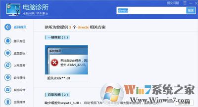 3、点开电脑诊所图标,搜索框搜索directx(为什么要搜索directx呢,因此一般出现xinput1_3.dll问题都是因为directx丢失了,因此我们只需要修复directx就可以了)。