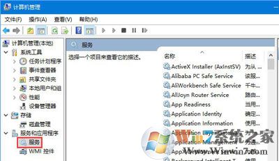 2、在弹出的管理窗口中,下拉‘服务和应用程序’---找到‘服务’。