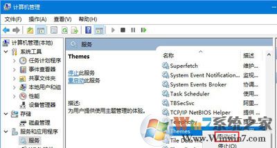 4、在‘服务’中找到‘Themes’,右键选择‘启用’。