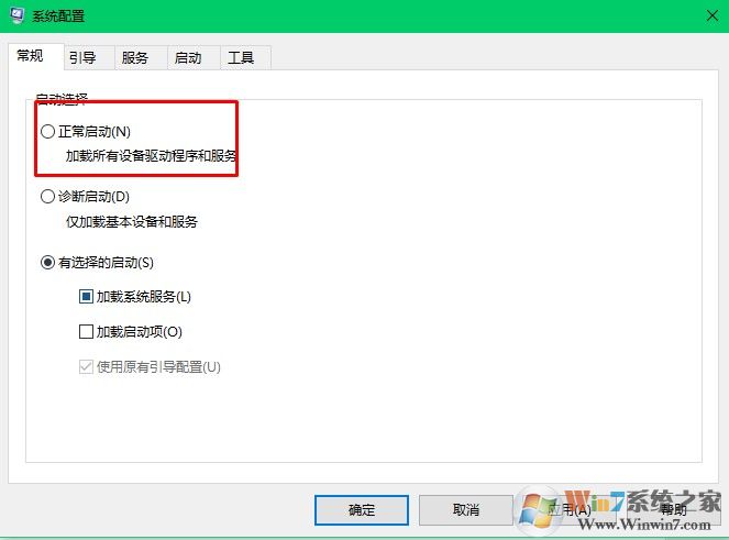 五、切换到【常规】选卡, 选择【正常启动】 ;