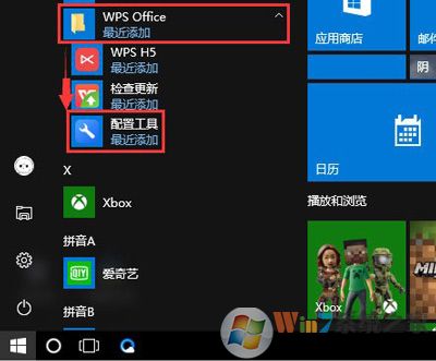 1、点击开始菜单,找到WPS Office,选中WPS Office中的配置工具,如图: