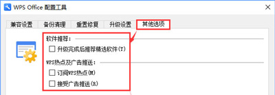 3、打开之后选择“其他选项”——取消前面的“订阅WPS热点”、“接受广告推送”,然后点击【确定】搞定,如下图: