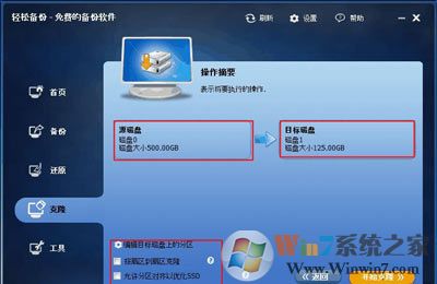 2、在Windows系统下使用轻松备份时,系统磁盘只能为源磁盘,而不能作为目标磁盘。