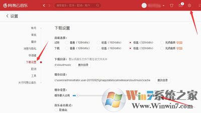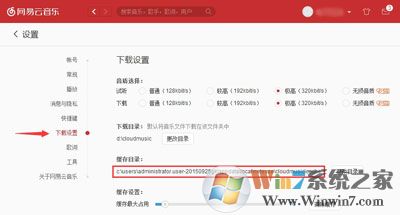 4、然后我们打开歌曲的缓存目录,位置在“设置”界面内“下载设置”选项右边显示界面的缓存目录那儿。