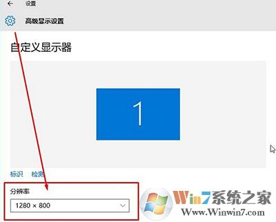 3、在“高级显示设置”界面将“分辨率”下拉菜单选择为带“推荐”字样的分辨率,然后点击应用;