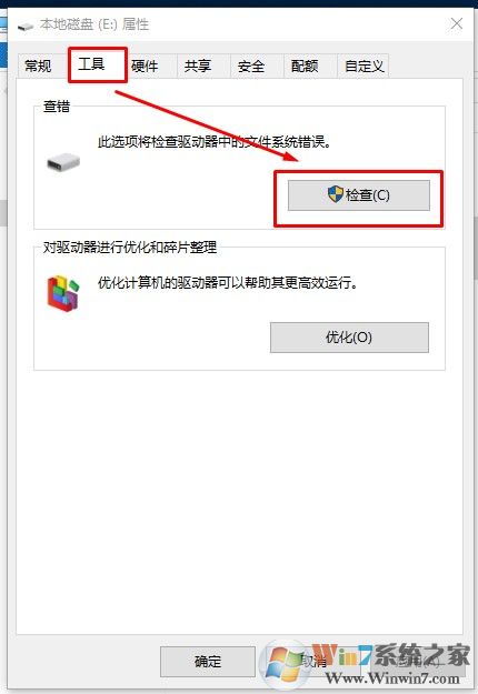 1.首先,返回到桌面位置,然后双击打开此电脑,一个一个的右键点击其中的磁盘,选择属性,在属性窗口中,将界面切换到工具这一栏,点击查错下的检查按钮。等待查错完成之后选择修复即可。