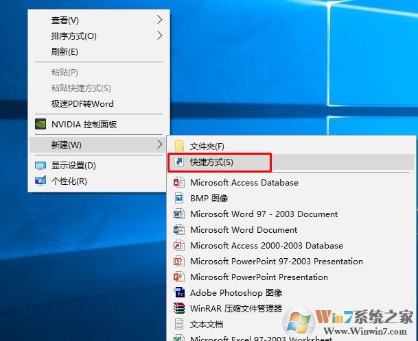 1.开机进入系统桌面,在桌面上右键空白处,点击新建选择“快捷方式(S)”,进入下一步操作。如下图所示