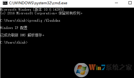 ⒈ 还是在命令提示符页面进行。我们输入ipconfig /flushdns ,然后按回车键执行命令。几秒钟后就会看到“成功刷新DNS解析缓存”的提示了。