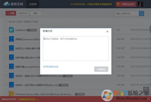 3、将希望进行离线下载的链接(支持各种链接)或者BT种子打开;