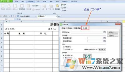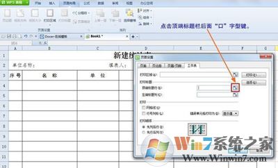 第四步:进入“工作表”设置页面,点击顶端标题栏后面“口”字型键。