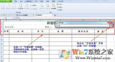 第五步:出现一个“页面设置”对话框,用鼠标按住左键,点选每一页同样的几行范围。
