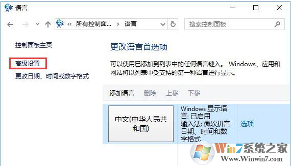 3、点击左侧上方的“高级设置”,如图;