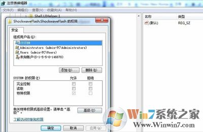 4、在新窗口中选中“组或用户名(G)”中列示的“Administrators(你登录计算机的用户名\Administrators)”,然后将权限修改为完全控制和读取,以代替之前的“特殊权限”选择。
