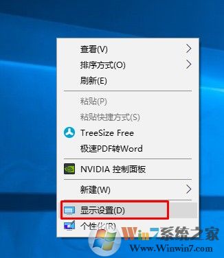 1、桌面右键选择显示设置。