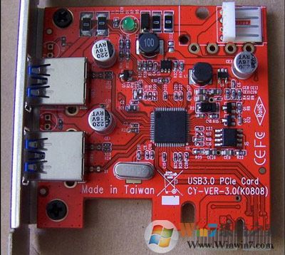 2、PCI-E接口,扩展出2个USB 3.0端口,PCI供电+软驱电源接口供电。