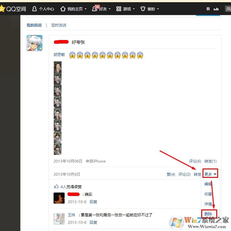 5、点击下面的删除,就可以删除说说了。