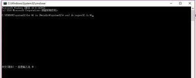 4、再不行的话,单击开始菜单,打开运行 ,输入cmd回车,进入DOS,在命令提示符下输入 :for %1 in (%windir%\system32\*.ocx) do regsvr32 /s %1 ,然后回车,再输入:for %1 in (%windir%\system32\*.dll) do regsvr32.exe /s %1回车,直到屏幕滚动停止为止,等待电脑重启。