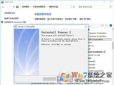 4、双击打开,找到要卸载的fences软件,双击卸载,在弹出框中选中下一步(Next),点击”yes“确认删除。然后确认删除历史数据。