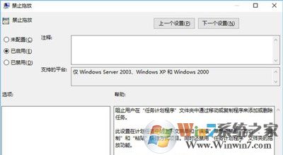 3、展开”用户配置“项目下方的“管理模板”在展开 “Windows组件”中,单击“任务计划程序”,然后在右边窗口中找到“禁用拖放”,双击打开该项目,将其设置为“未配置”或“已禁用”点“确定”退出即可。