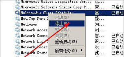 6、右键单击Multimedia Class Scheduler,选择停止。